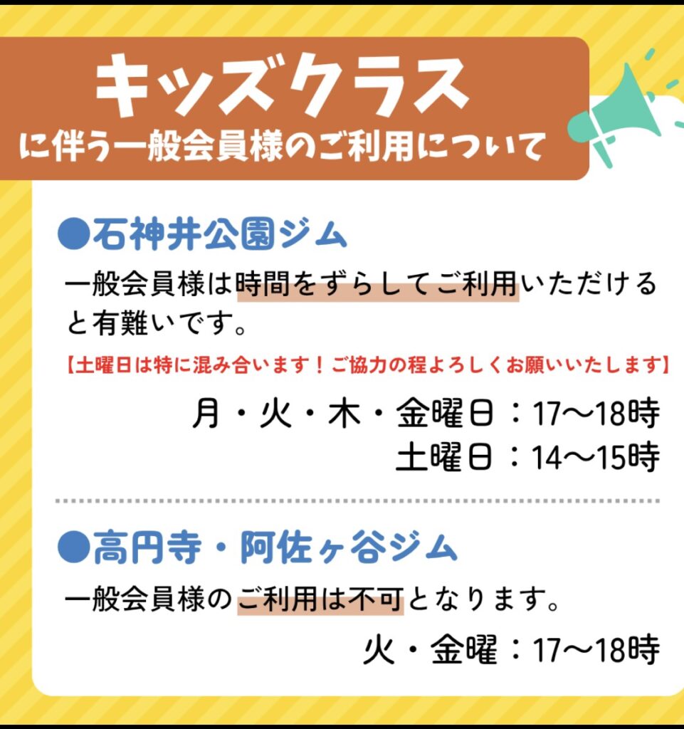 ※所沢・阿佐ヶ谷ジムは休館、石神井公園・高円寺ジムは短縮営業(10~19時)になります。