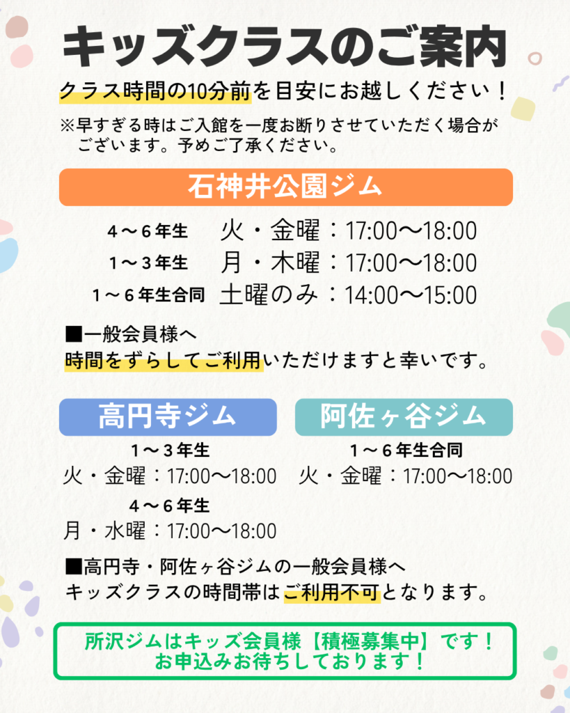🌸キッズクラスに関するお知らせ