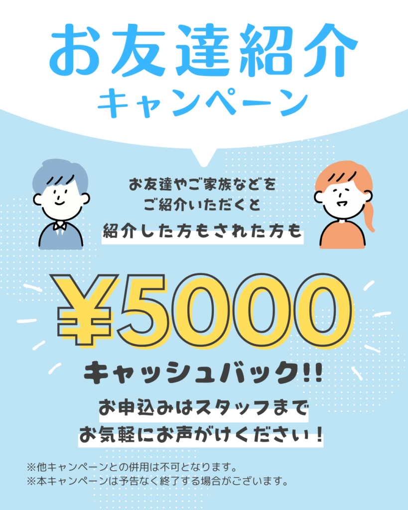 お友達やご家族などをご紹介いただき、ご入会いただけましたら【紹介した方】も【紹介された方】も
